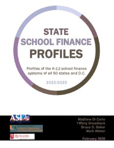 The eighth edition of our annual report presenting findings on effort, statewide adequacy, and equal opportunity in state school finance systems. Published February 2026.